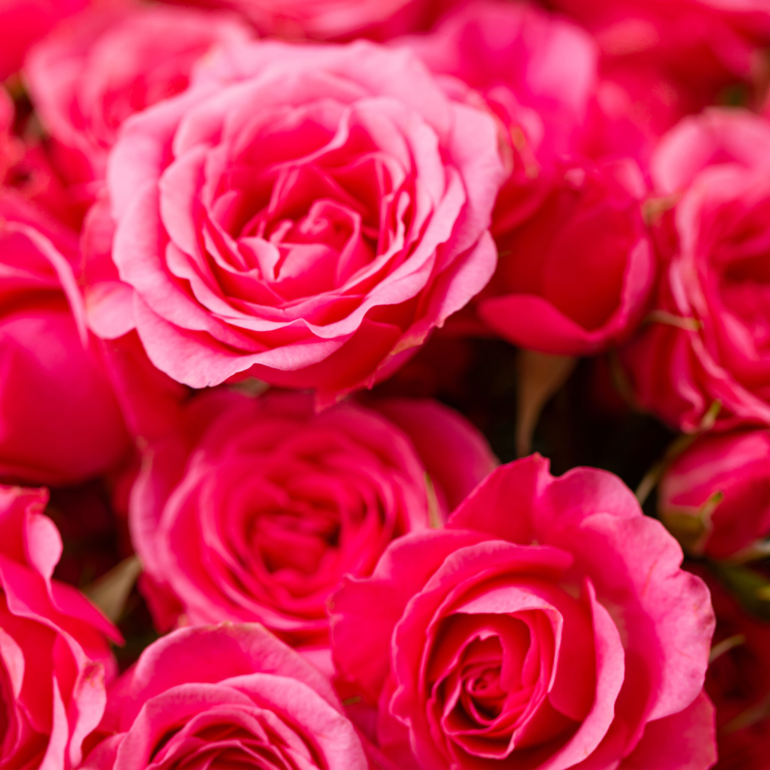 Flowers: 15 pink baby roses in a clear glass vase